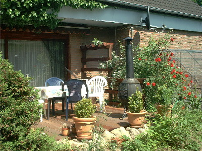 Hier ein Blick auf die ca. 30 m2 große, zur Südseite gelegene, auch für Rollstuhlfahrer erreichbare Terasse.